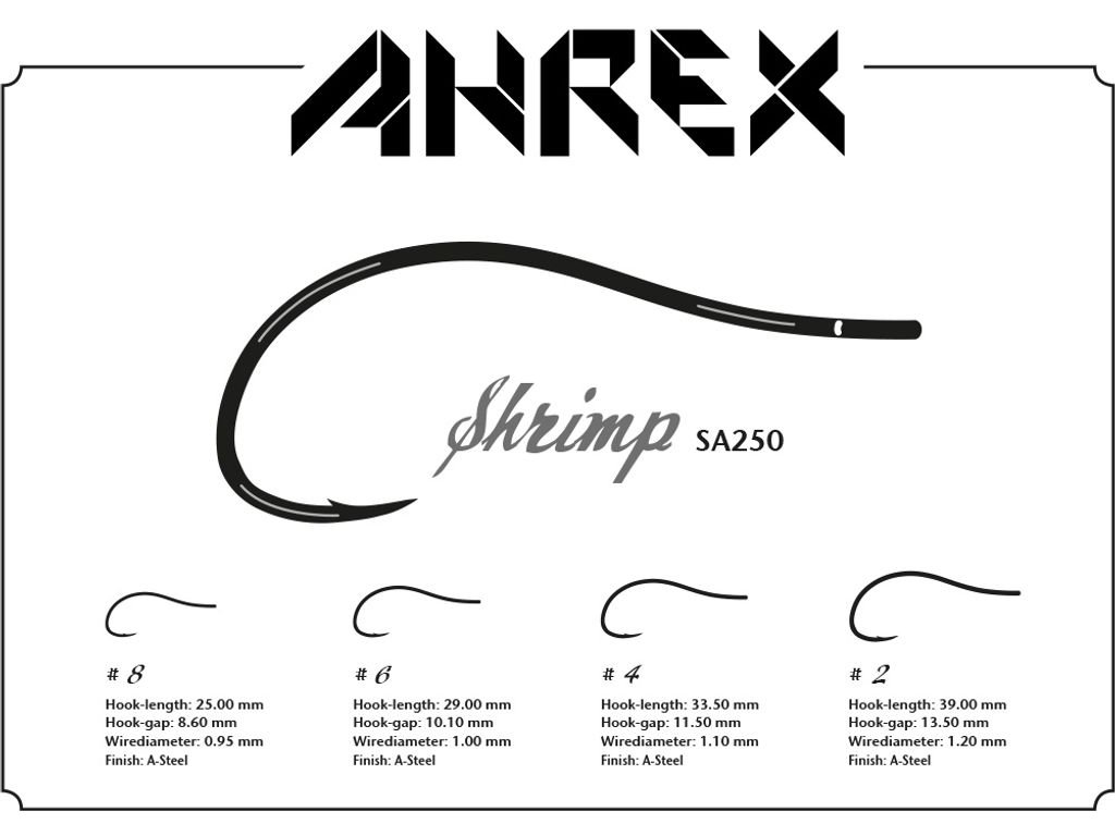 Model SA Shrimps navazuje na původní NS150 z Nordic Salt série, ale s upraveným tvarem obloučku a mírně otevřeným hrotem. Díky tomu háček skvěle sedí v konstrukci krevetových mušek pro bonefish i jiné tropické druhy – a také v oblíbených „bend-back“ designech. V poslední době si získal přezdívku Shallow Water Clouser Hook, pojmenovanou po legendárním Bobu Clouserovi.