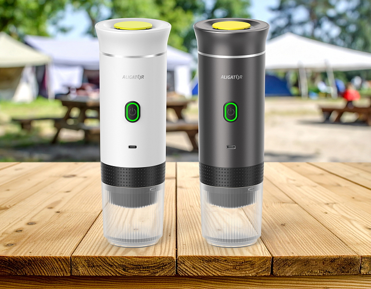 Vejde se do batohu… ale zapůsobí i na stole Aligator PortaCaffé zaujme už na první pohled svým elegantním a minimalistickým designem. Matné barvy s kovovým efektem v kombinaci s jemnými detaily působí luxusně a zároveň funkčně. Díky svým rozměrům a nízké hmotnosti se pohodlně vejde do batohu, auta i příruční tašky. Intuitivní ovládání jediným tlačítkem a přehledná LED signalizace z něj dělají ideálního společníka pro každodenní použití.