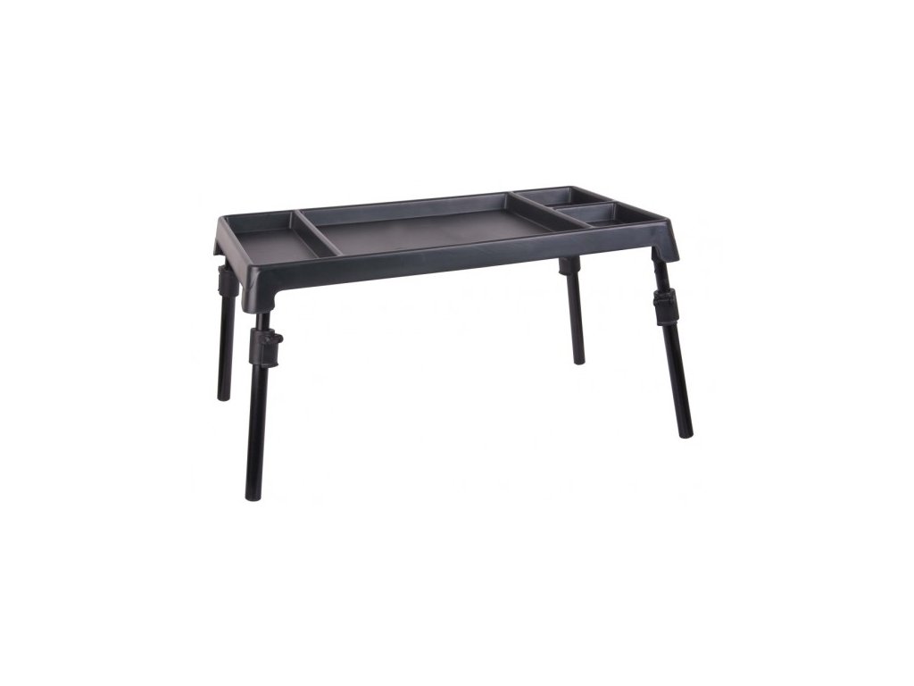 Stolek do bivaku. Díky němu lze v bivaku lehce udržet pořádek. Je rozdělen na několik oddělení, takže věci zůstávají na svém místě. Stolek má velmi nízkou hmotnost a velmi vysokou stabilitu. Má také nastavitelné nohy, takže není problém ho postavit kdekoliv v terénu.