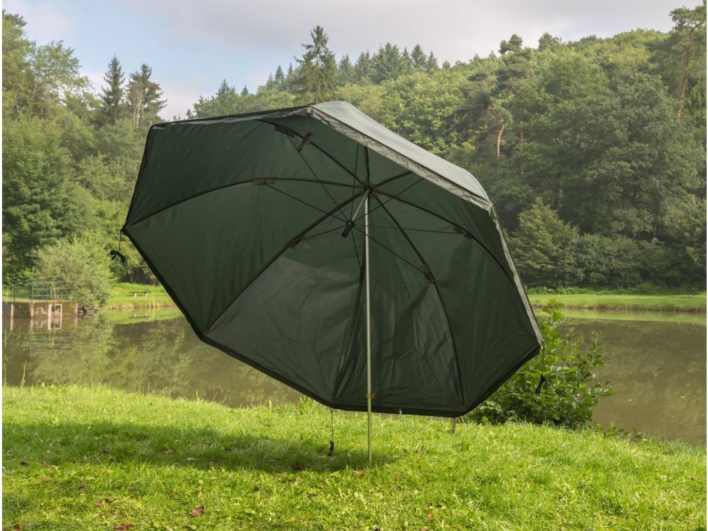 Velký rybářský deštník, který vás ochrání nejen proti sluníčku a dešti, ale při vhodném naklonění i proti větru.