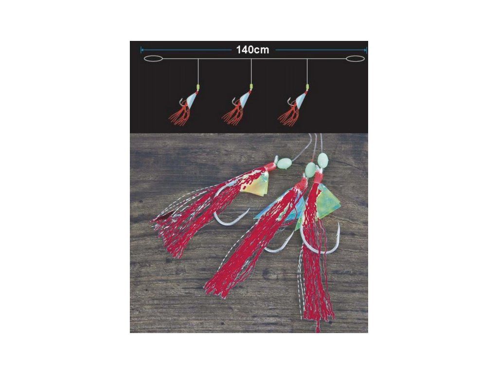 Systém pro velké tresky obecné a tresky tmavé, –se třemi ocelovými háčky, červenými střapci a reflexní fólií. Součástí balení je EVA Board - pěnová deska na návazce.