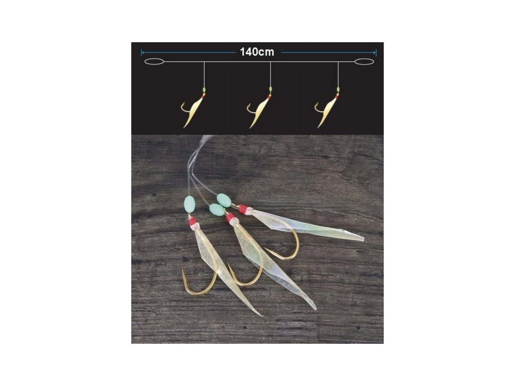 Systém pro velké tresky obecné a tresky tmavé, se třemi zlatými háčky. Slídové tělo je imitace rybí kůže. Součástí balení je EVA Board - pěnová deska na návazce.