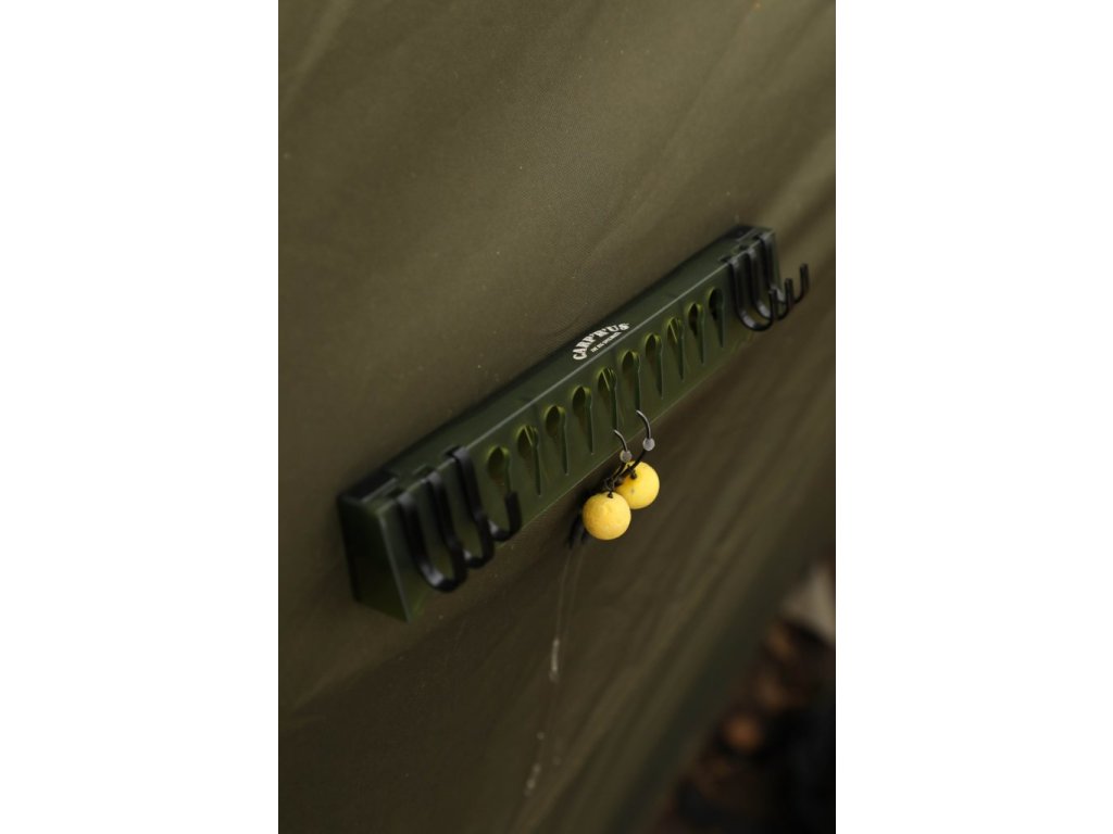 Pokud si rádi připravuje návazce do zásoby, chcete v nich mít přehled a zároveň je mít neustále po ruce, Rig Rack je ideálním řešením. Díky odnímatelné, magnetické destičce (v zeleném odstínu) držák bez problémů připevníte na stěnu bivaku, nebo kdekoliv na bok auta. Držák můžete i zavěsit pomocí háčků, po jejich nasazením na zadní stranu Rig Racku, například na kbelík, nebo různé hrany.
