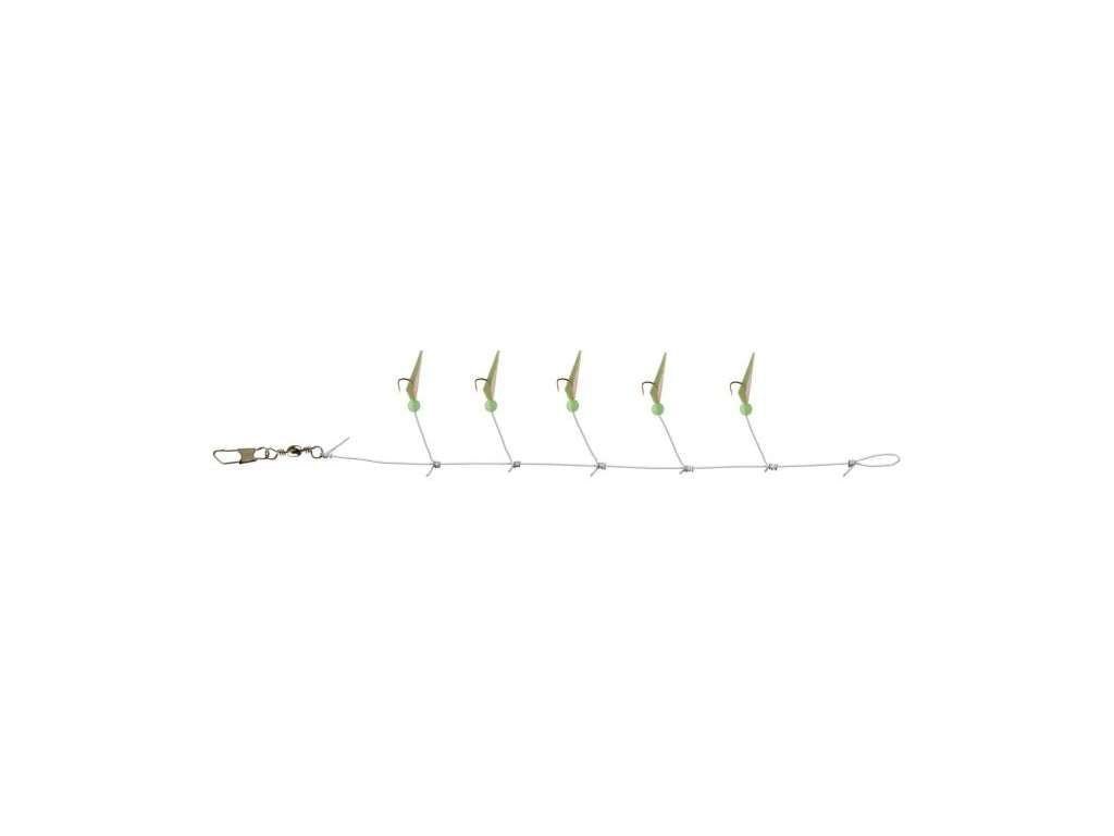 Návazec „Micro“ s pěti háčky, svítícím korálkem a pravou japonskou rybí kůží. Perfektní na lov smáčků.