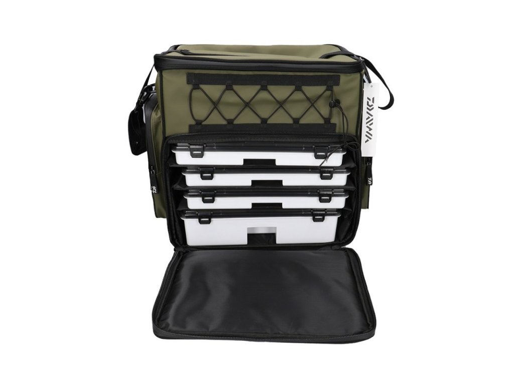 DAIWA D-Vec WP-500 Tackle Bo x Rucksack XXLL – prostorný vodotěsný rybářský batoh určený k uložení krabiček s nástrahami a příslušenství poskytuje x malou kapacitu odolnost a pohodlí pro delší rybářské výpravy.