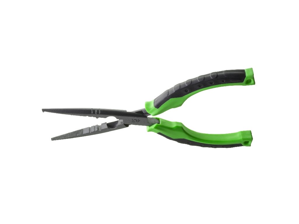 Kleště s dlouhými čelistmi pro bezpečné vyproštění háčků. Kleště jsou vyrobeny z kvalitní uhlíkové oceli a mají ergonomickou PVC rukojeť.