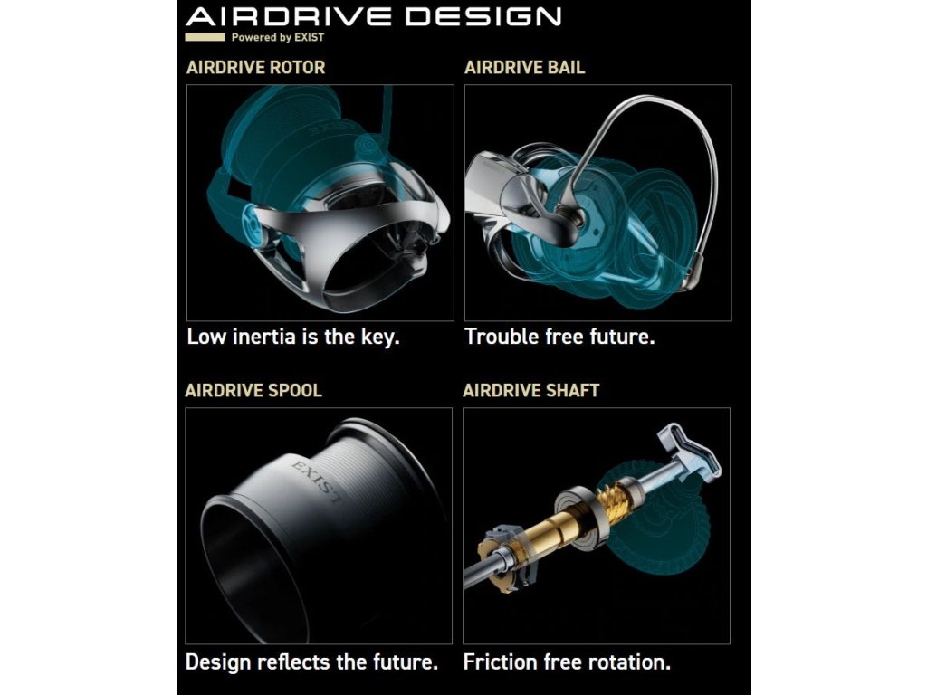 AIRDRIVE DESIGN lze rozdělit do 4 klíčových technologií. Nový AIRDRIVE ROTOR a nově vyvinutý AIRDRIVE BAIL oba společně snižují hmotnost na horním konci navijáku. Snížená hmotnost umožňuje snadné a plynulé otáčení s rychlým startem a nízkou setrvačností. Zbytečná hmotnost a tloušťka byly odstraněny za účelem inovace nového AIRDRIVE SPOOL, který dokonale ladí s AIRDRIVE ROTOR & AIRDRIVE BAIL a dotváří přepracovanou přední jednotku.