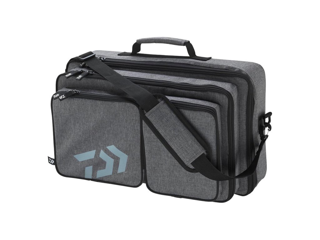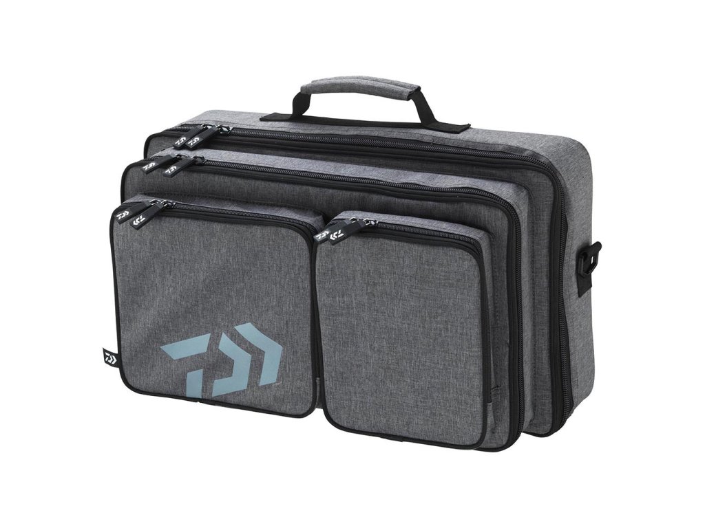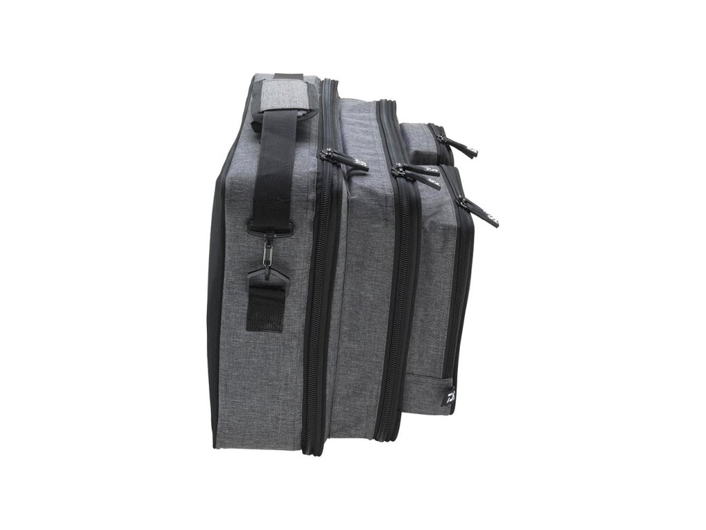 Taška nabízí dvě prostorné přední kapsy pro krabičky a příslušenství, horní hlavní oddíl s odnímatelnou EVA deskou na návazce a pevnou vnitřní výztuhou víka proti propichování háčky. Spodní komora poskytuje velký úložný prostor pro navijáky, cívky a další vybavení a lze ji pomocí přepážek rozdělit podle vlastních potřeb. Uvnitř jsou také tři samostatné vnitřní pouzdra pro olova, obratlíky a drobnosti. Víko uvnitř doplňují pružné pásky pro uložení sumcařských kleští, klonků apod. Pogumované protiskluzové dno je voděodolné a brání pronikání vlhkosti z mokrého podkladu. Silné ABS zipy jsou nerezavějící a připravené na vysoké zatížení, taška je vybavena polstrovaným nastavitelným ramenním popruhem a robustním madlem pro přenášení.