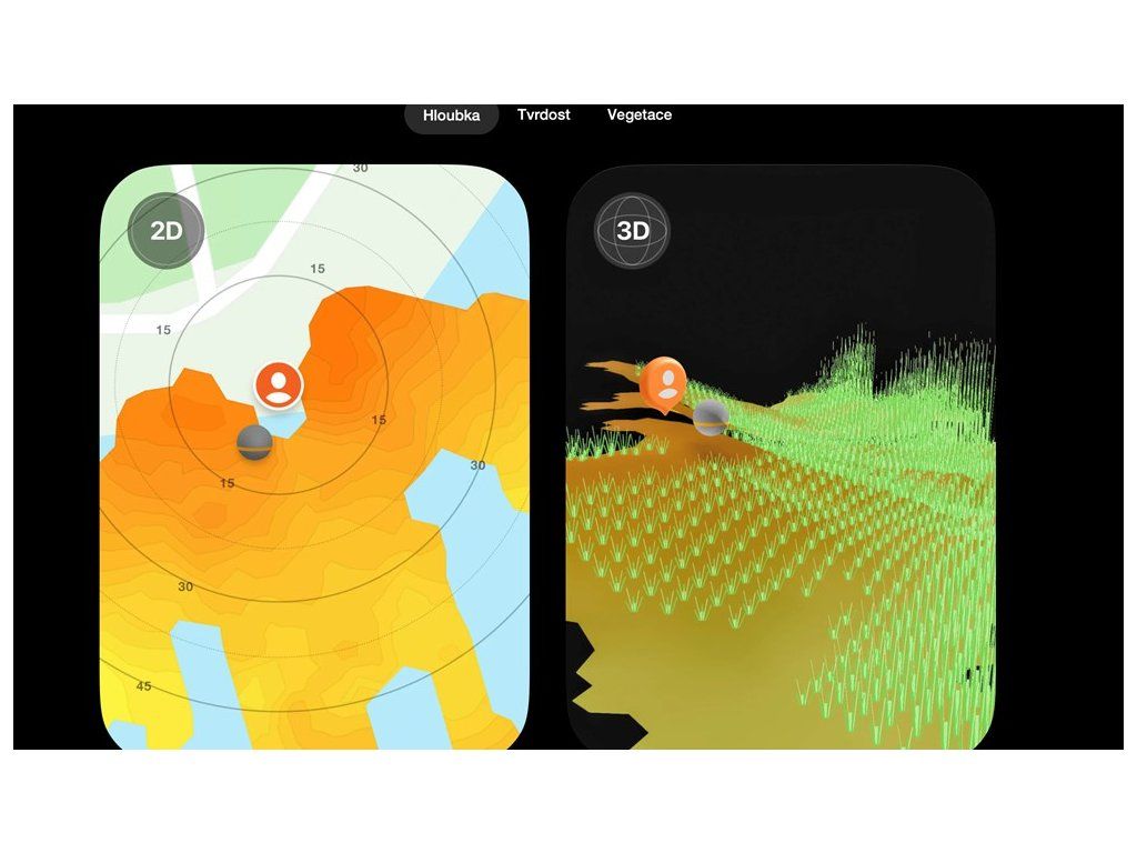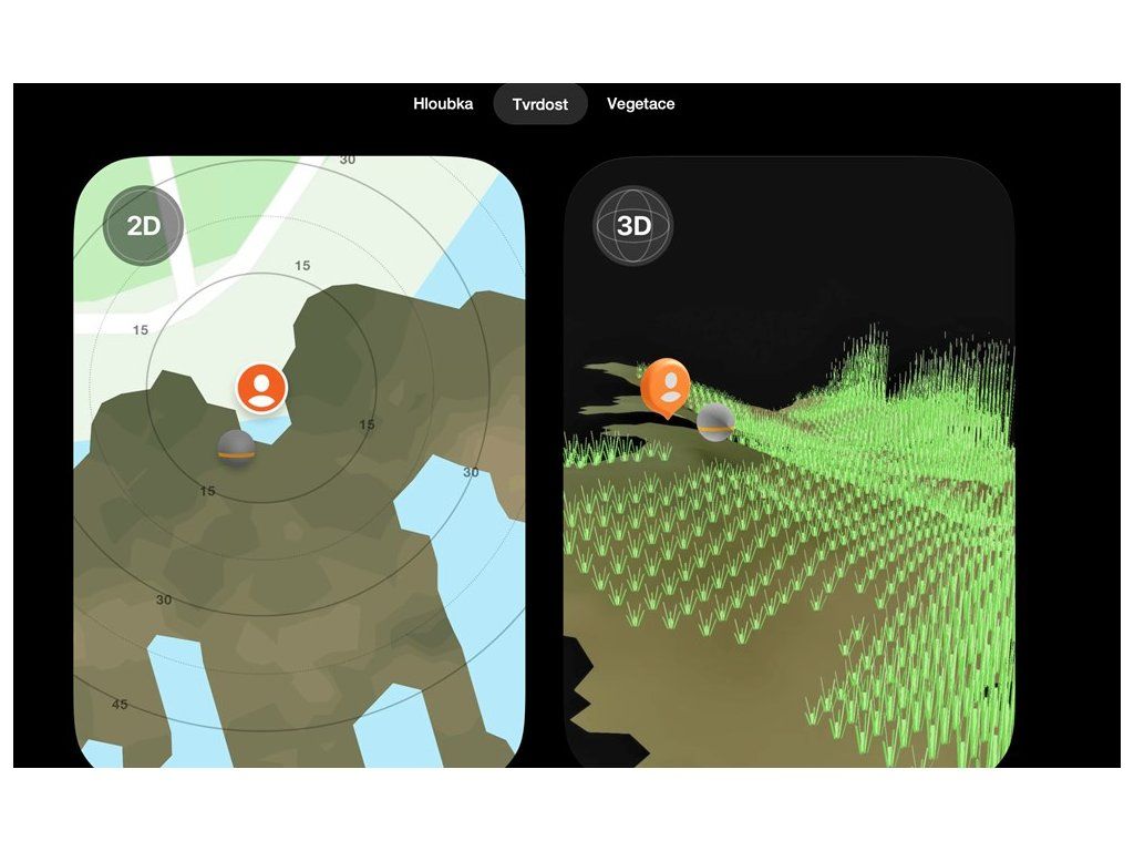 S CHIRP+ 4 můžete vytvářet osobní mapy tvrdosti dna ve 2D i 3D, které přesně ukazují, kde tvrdý štěrk přechází do měkkého bahna.