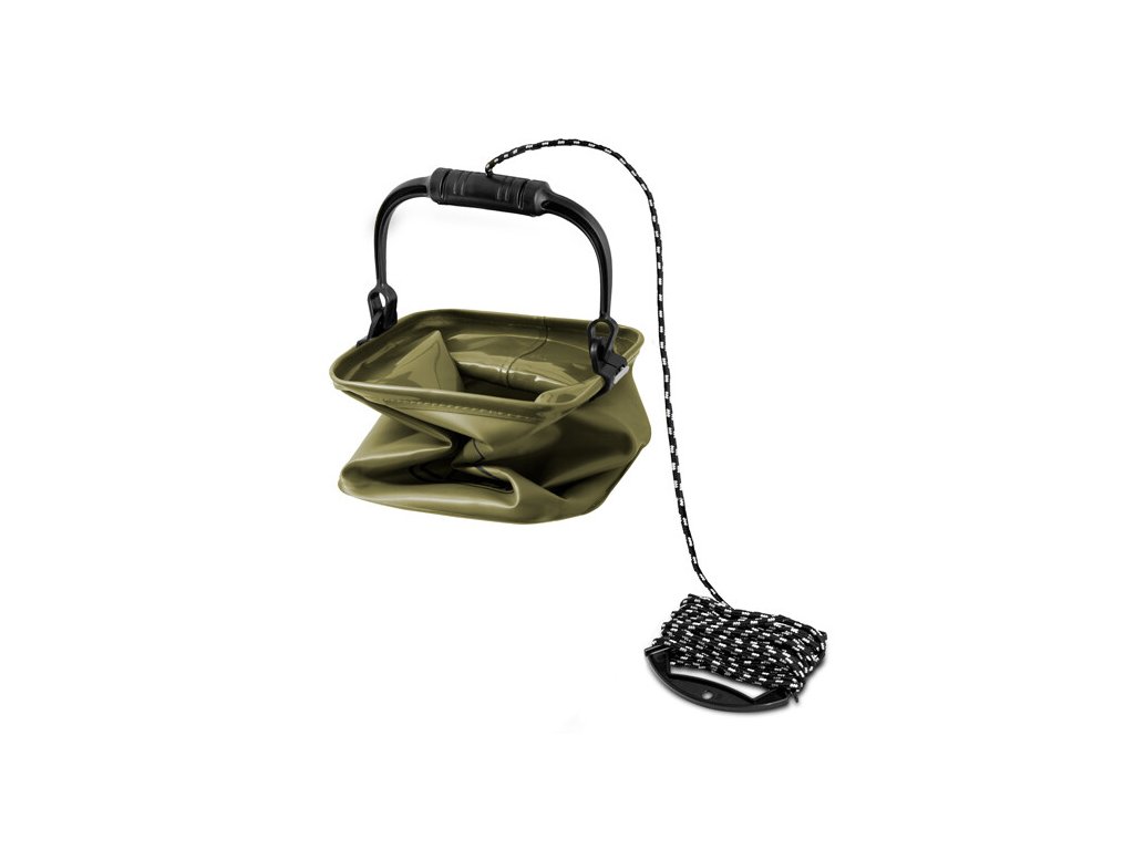 Díky praktickému držadlu, na kterém je namotán provaz, je možné nabrat vodu i v těžkém terénu z větší výšky, případně z člunu.