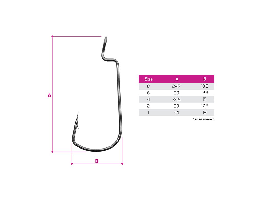 Háček je vyroben z tenkého, ale velmi pevného drátu, díky čemuž je pod vodou téměř neviditelný. Tato vlastnost je velkou výhodou při lovu plachých ryb v čistých vodách a při použití malých nástrah a jemnějších vlasců. Velké očko zaručuje vysokou volnost pohybu nástrahy například v kombinaci s čeburaškou. Široký oblouček háčku skvěle drží ulovenou rybu a nedovoluje její uniknutí. Háčky mají mimořádně ostrý hrot a vysoce kvalitní zpracování.