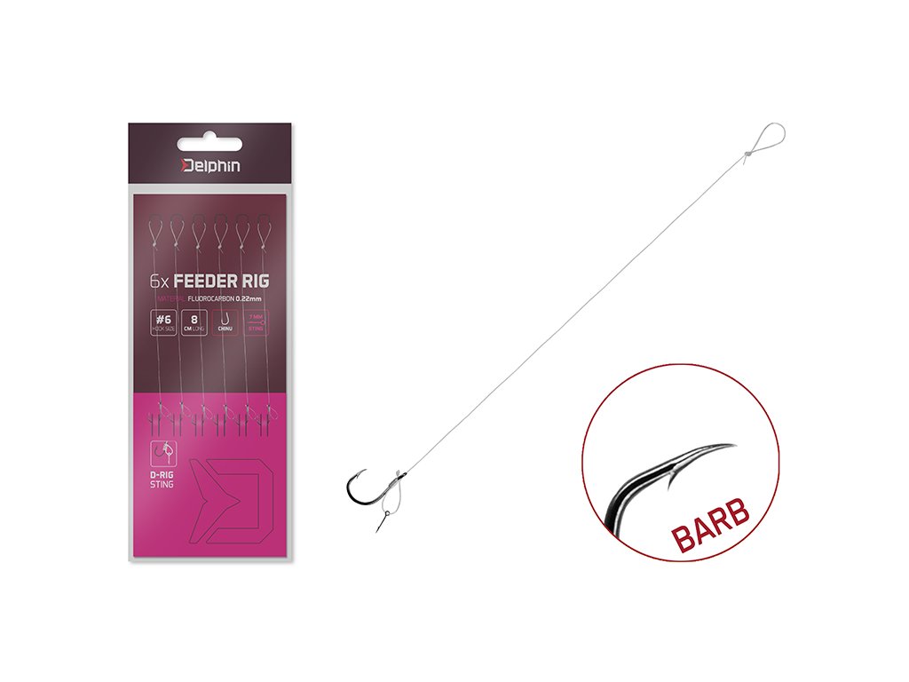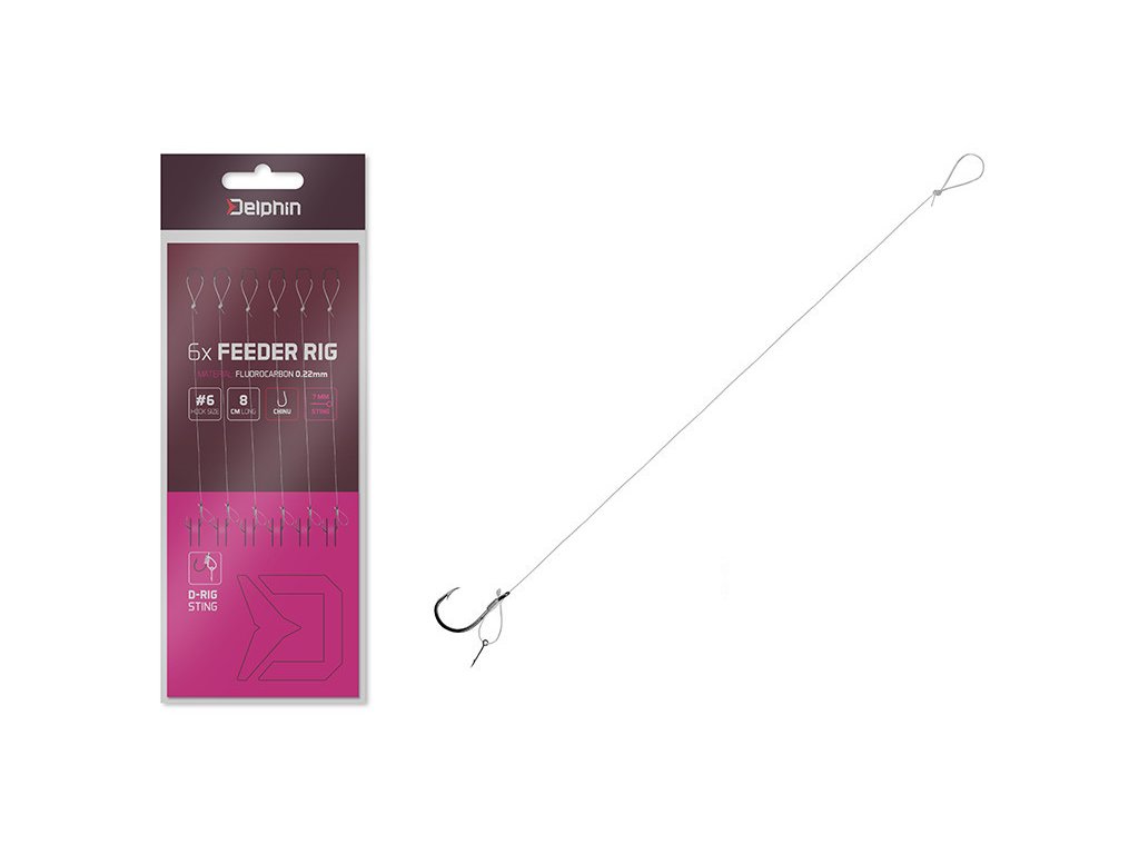 Delphin FLR D-rig zhotovený z fluorocarbonu je feederový návazec, který je navázán jako tzv. D-rig a je ukončen trnem.