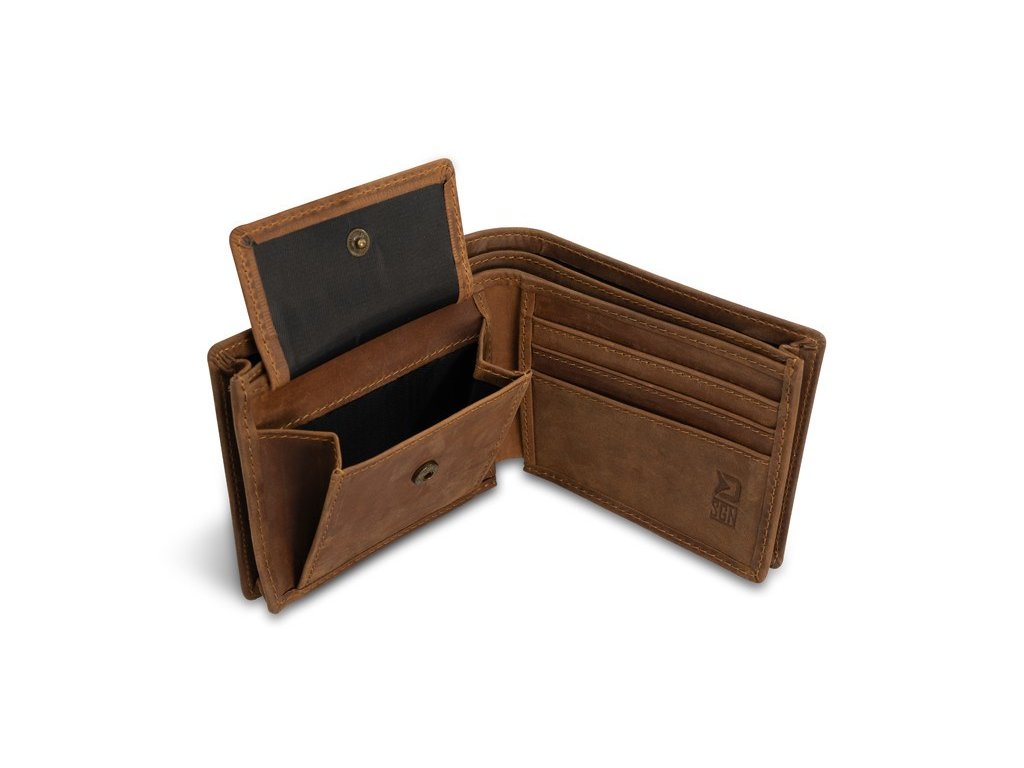 Obsahuje několik přihrádek na platební a zákaznické karty, zapínací kapsu určenou pro mince, případně žetony a samozřejmě nechybí dvě přihrádky pro uložení bankovek.