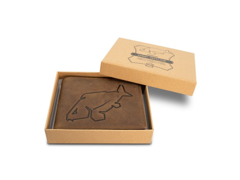 Stylová kožená peněženka vylepšená klasickým motivem kapra, která bezpečně uchová vaše doklady i hotovost.