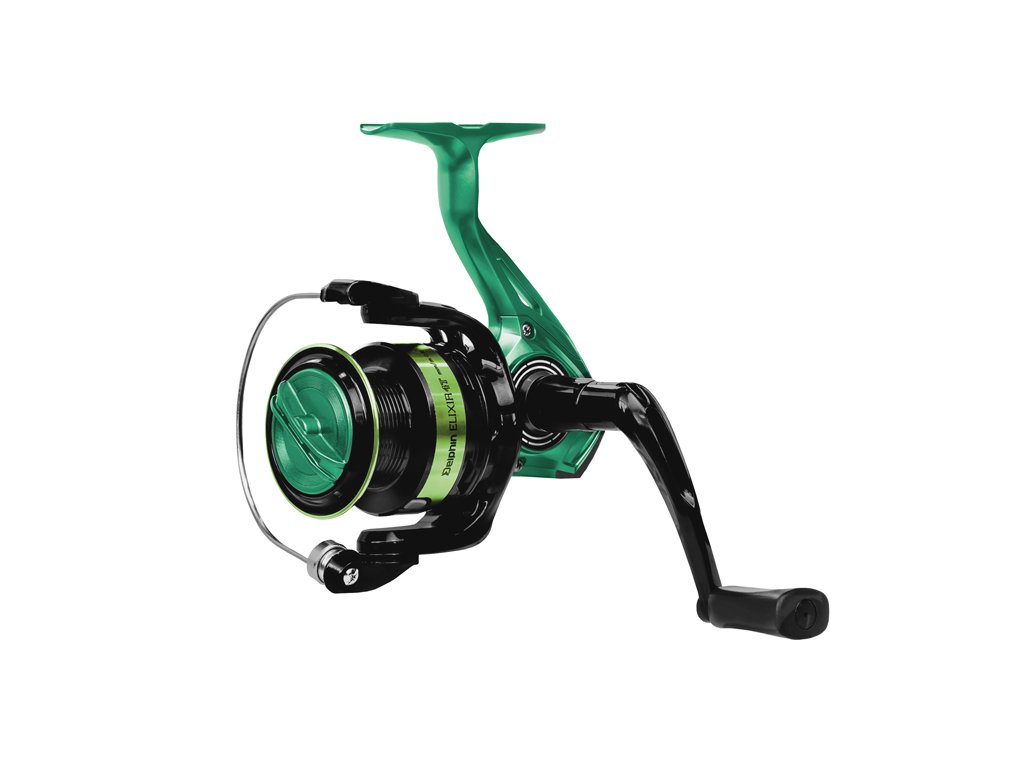 Designově nevšední naviják s přední brzdou za příjemnou cenu. To je Delphin ELIXIR, který svým zeleno-černým provedením vyčnívá z řady kompaktních navijáků, vhodných na přívlač, feeder či lov se splávkem.