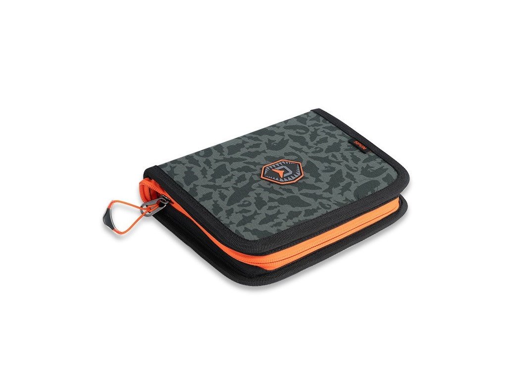 Jako prevenci proti zachytávání háčků nástrah o sebe jsme penál vybavili pevnou plastovou příčkou. Ocení ji nejen vyznavači velmi populárního lovu pstruhů na stojatých vodách, známým pod názvem Trout Area, ale také všichni ostatní rybáři, kteří se nebojí často měnit nástrahy, a tak vyprovokovat i pasivní rybu k záběru. Na kvalitní vnější zip oranžové barvy je připevněn plastový úchyt pro lepší manipulaci, který je na konci rozšířen, pro snadné a rychlé uchopení. Doplňky oranžové barvy umožňují rybáři rychleji spatřit pouzdro, a to i za šera, během časných ranních nebo pozdních večerních vycházek. Design tašky doplňuje naše jedinečná tmavá ATAK! kamufláž se siluetami dravců.