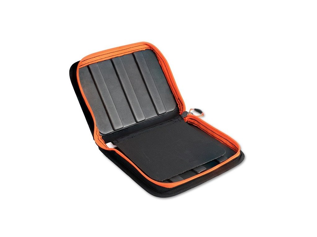 Pevná jigová taška ILLEX ve stylu pořadače s uchy na přenášení. Pouzdro má 12 listů.