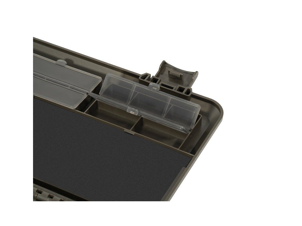 Fox krabička ideální pro ukládání celé řady součástí pro koncovou montáž, jako například: obratlíků, gumových kuliček, klipů, boilie stoperů, kroužků, Zig Alignas, pěny,...