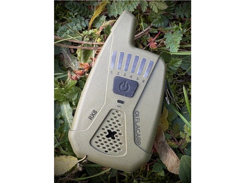 Bezdrátový příposlech FLACARP RX8 převzal od svého předchůdce RX7 skvělé parametry (velký dosah až 1km, 12 kanálů, možnost ovládání až 4 světel FLACARP) a přidává další užitečné funkce: díky funkci blokace alarmových čidel již nebudete poslouchat žádné zbytečné alarmy. Signál z čidel je potlačen při záběru nebo lze alarmy vypnout jedním stlačením tlačítka na příposlechu. Byla vylepšena také funkce upozornění při nežádoucím vypnutí signalizátoru záběru jednoznačným kolísavým tónem. Zcela přepracována byla funkce ukládání (učení) dalších signalizátorů a čidel – vše je nyní mnohem jednodušší.
