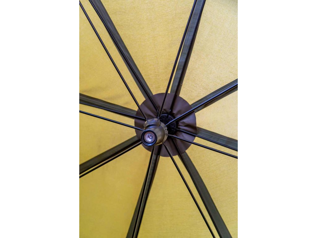 - Vyrobený na oválném rámu, kde se čtyři žebra pro dosažení větší stability dotýkají země a prodloužený lem poskytuje lepší krytí