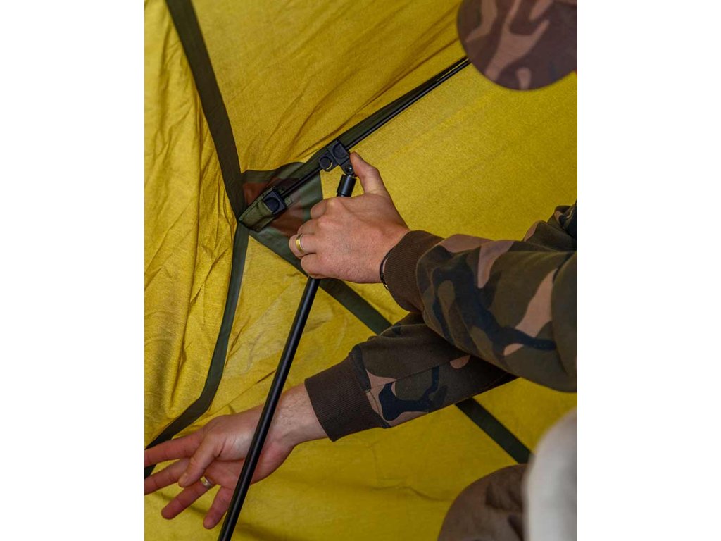 Perfektní přístřešek na krátké vyprav pro rybáře, kteří přepravují minimální vybavení . Nový 60” design umožňuje pohodlné zakrytí lehátka při lovu přes noc.
