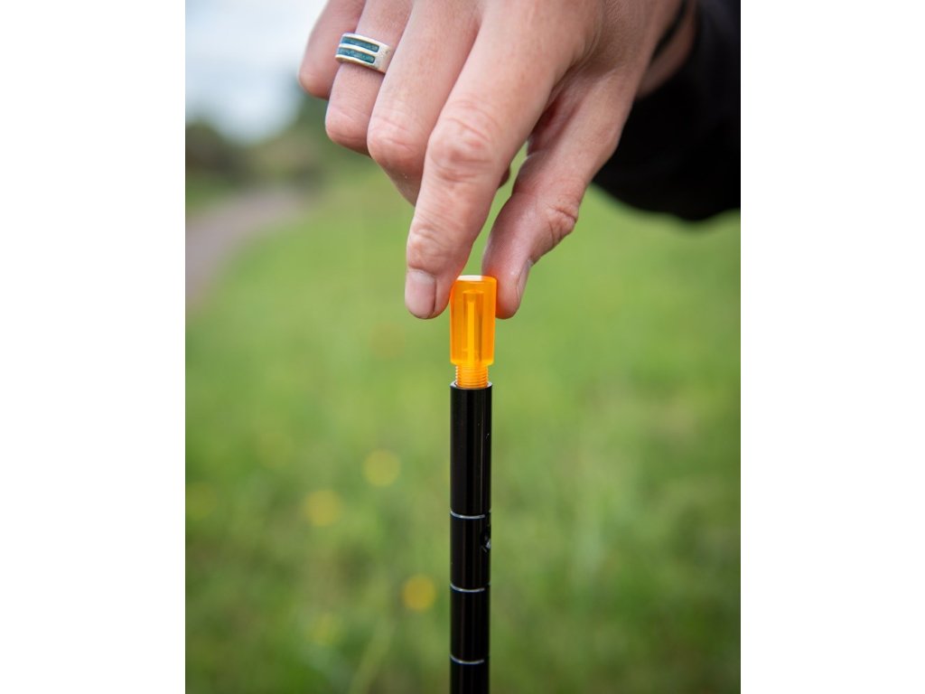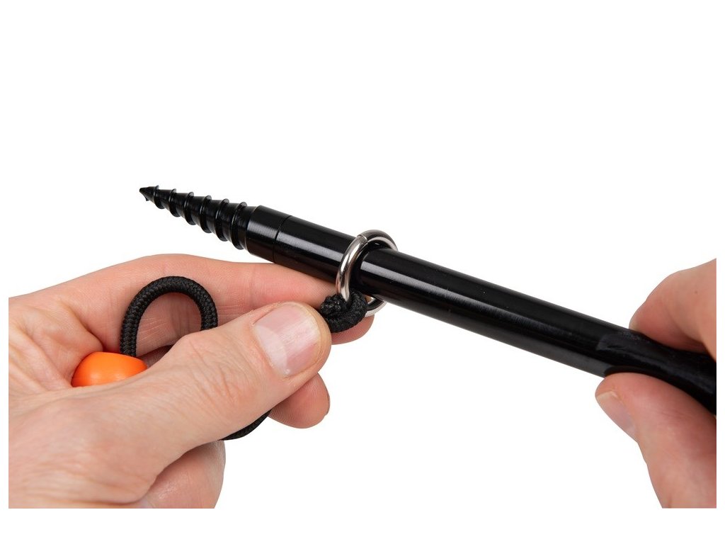 - Očka z nerezové oceli přivázaná na 13ft “měřicí šňůru”, lze přizpůsobit délce používaných prutů.