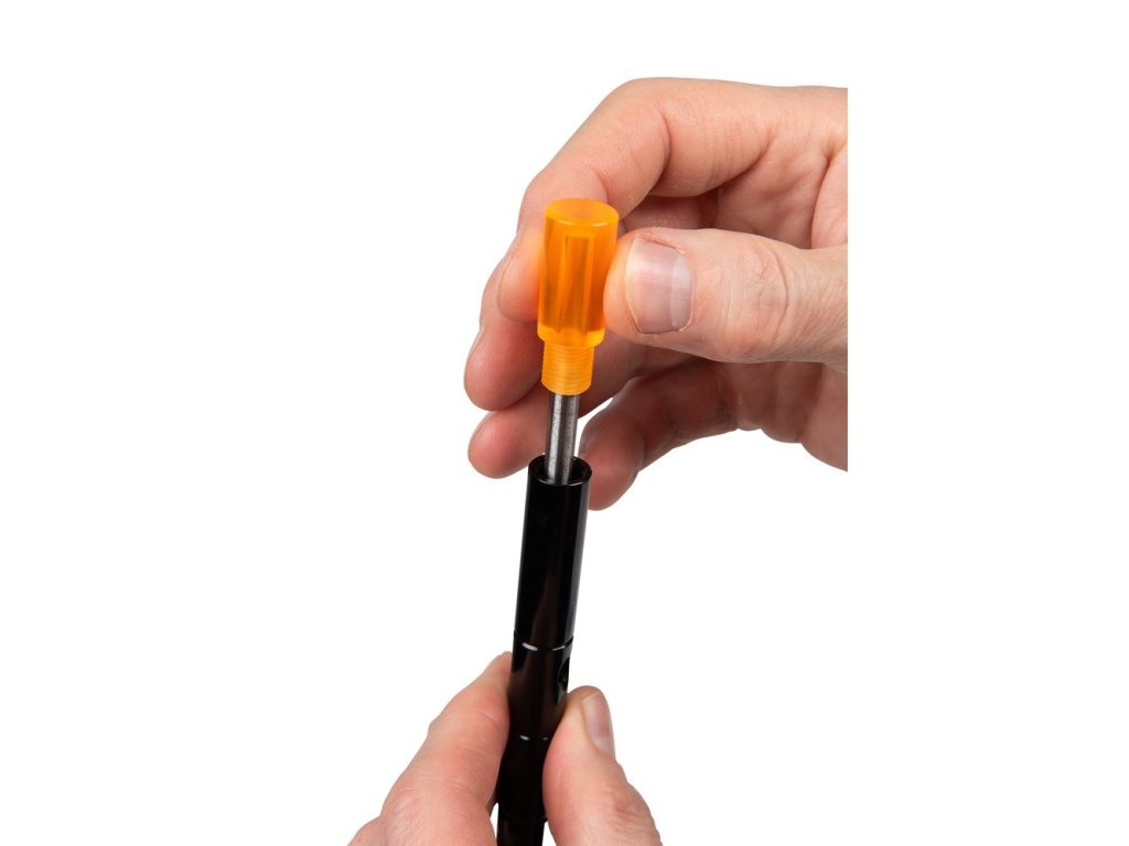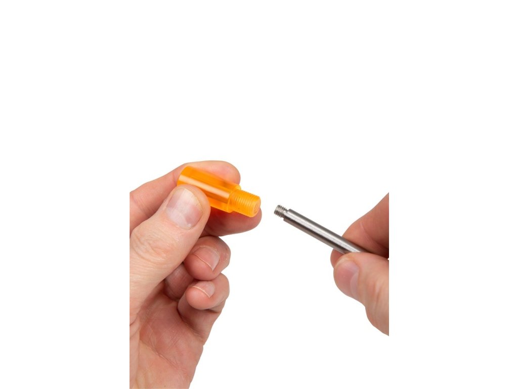 - Průsvitný oranžový vršek s drážkou pro 25mm Izotop, gumová zátka spolehlivě drží na místě.