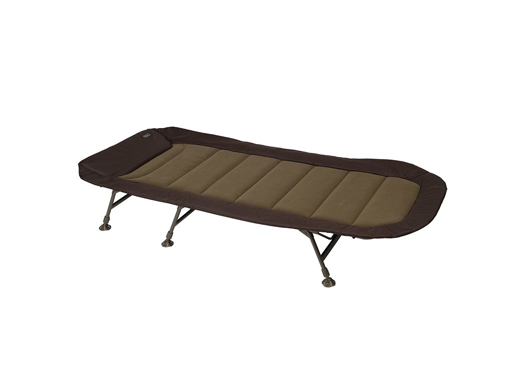 Konstrukce bez kloubů (cam-free design) poskytuje větší využitelnou šířku a spolu s plochým rámem a pohodlnou polstrovanou pěnovou matrací zajišťuje vysoký komfort při odpočinku u vody. Stabilitu i na nerovném terénu zaručuje šest výsuvných nohou s otočnými bahenními patkami.