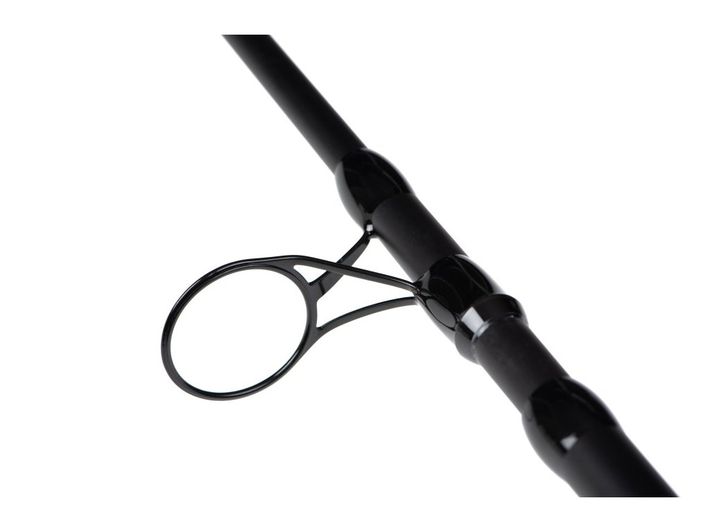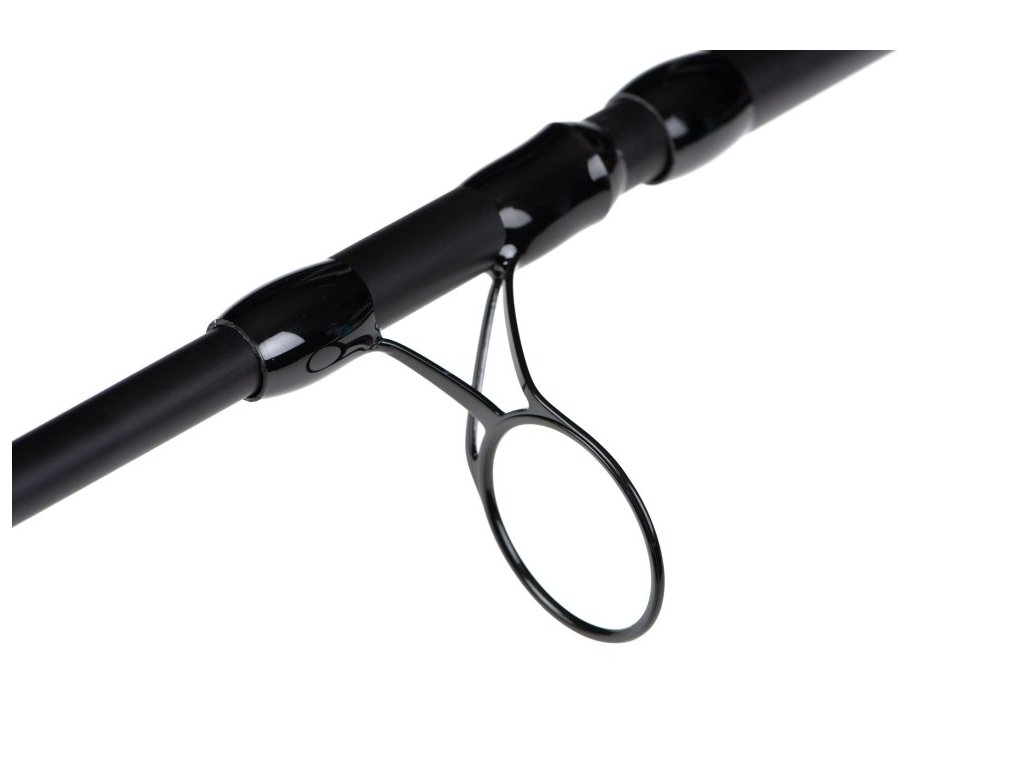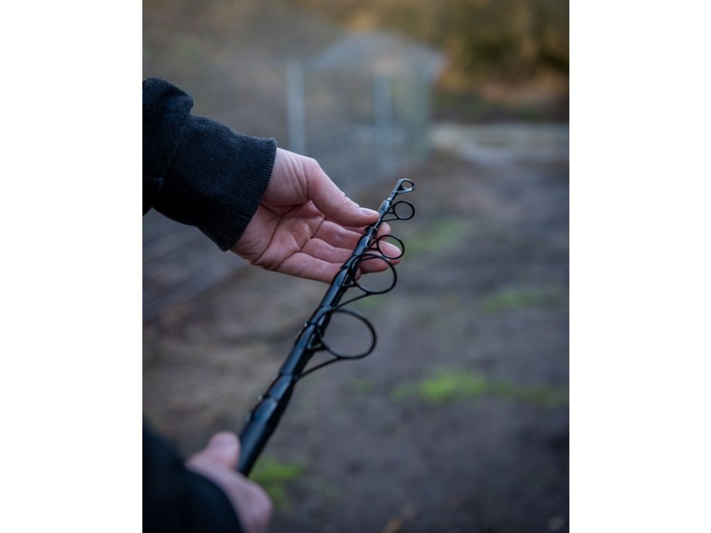 Elegantní, do detailů propracovaný teleskopický kaprařský prut, v černém provedení.