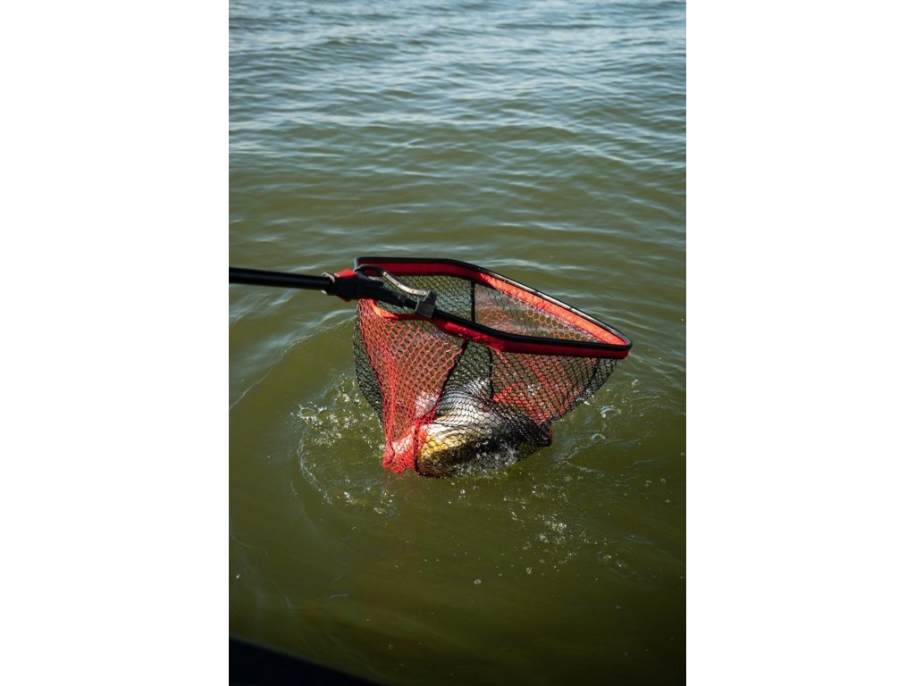 - Pogumovaná k rybám šetrná síťka: odolná k rybám jemná síť v nápadné černo červené Speedflow barevné kombinaci