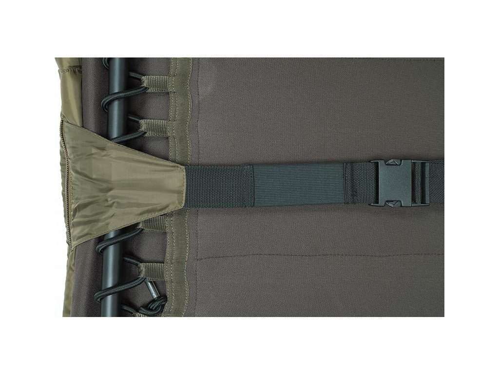 - Elastické kapsy v hlavové a nožní části s otvorem pro navlečení i na lehátko, které má pouze jednu nohu na koncích, jako je Flatliner 6 Leg