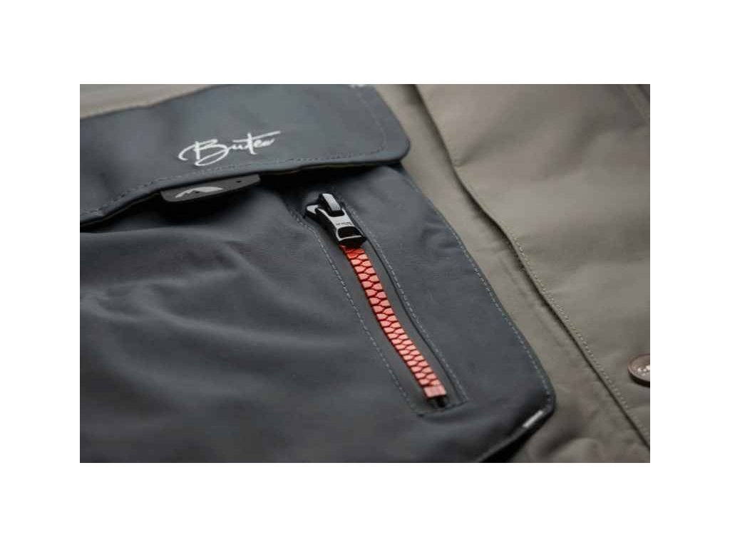 Bunda kratší délky, která je speciálně určena pro prívlačiarov nebo muškařů. Bunda je taktéž vhodná i pro lov z lodi kde vás nebude omezovat v pohybu. Rybářská bunda Geoff Anderson Buteo je prodyšná a reguluje mikroklima díky kombinaci různých technicky složených materiálů. Vložka je kombinovaná s mikroflísem tam kde je potřebné teplo a prodyšná síťová podšívka je osazena na místech je třeba uvolňování tepla. Buteo má zesílené místa při nejvíce zatížených místech a to například sáčky nebo zipy. Pod levým horním kapsou je umístěn silný odpojovací magnet pro upevňování nástrojů jako například pean. Bunda Geoff Anderson Buteo má 7 kapes a z toho jedno velké zadní, ideální pro odkládání láhve nebo termosky. Odolná vůči slané vodě, odolná, paropropustná a nepromokavá to je špičková bunda Buteo Geoff Anderson.
