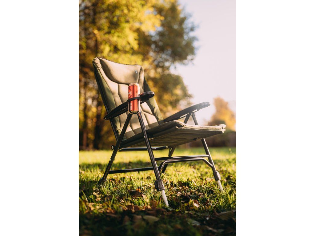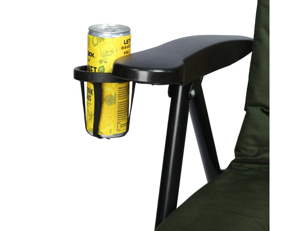 Kvalitní křesílko, které má polstrování vyrobeno z příjemného polar fleece a v rukojeti naleznete praktický výklopný držák na nápoj.