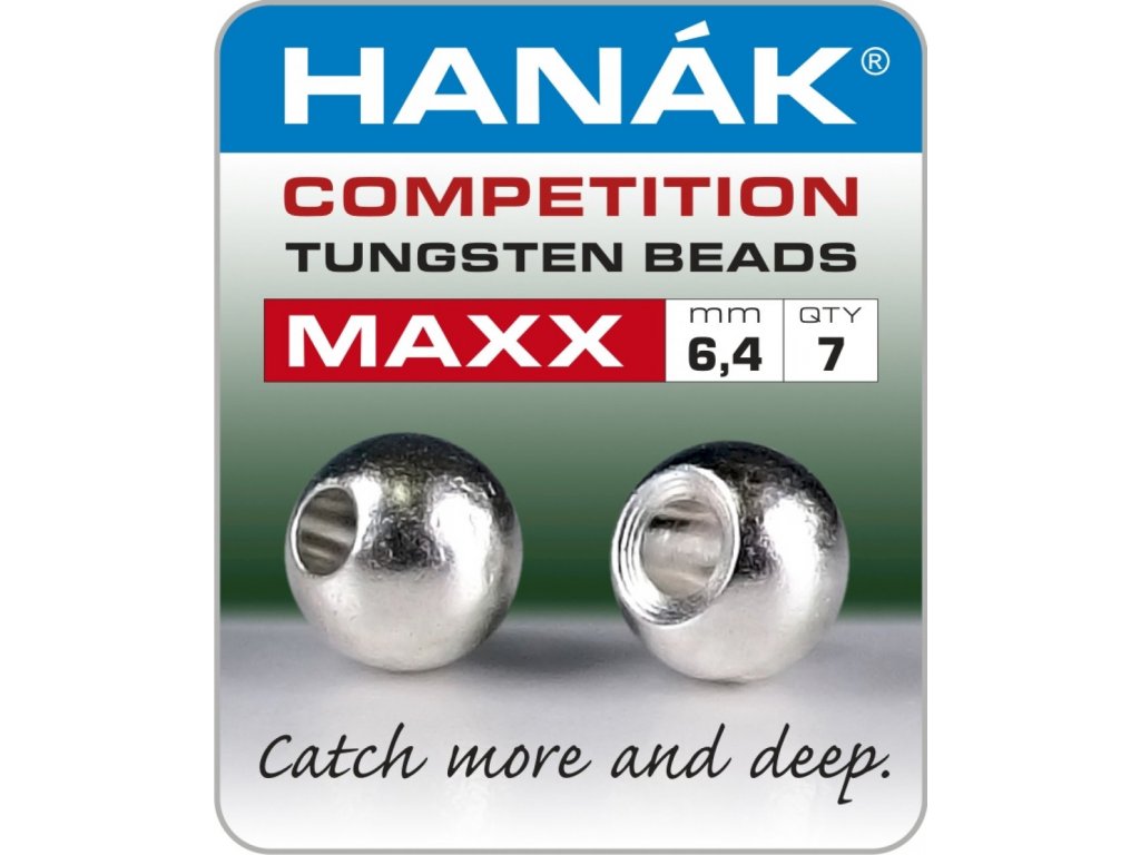 Tungstenové hlavičky Hanák MAXX 6,4mm jsou navrženy speciálně pro vázání extrémně těžkých vzorů nymf a streamerů. Vhodné do velmi hlubokých tůní, extra prudkých proudů, kdy přidaná váha do mušky umožňuje proniknout až na dno kde ryby nejčastěji přijímají potravu.