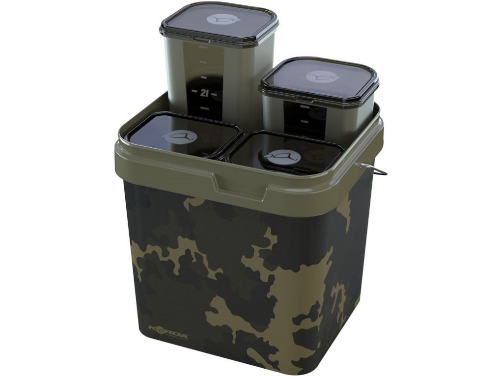 Tento praktický systém má objem 17 litrů a je dodáván se čtyřmi samostatnými boxy, z nichž každý lze naplnit něčím jiným a kde buď nechcete míchat všechny návnady dohromady, nebo je chcete připravit přímo na místě. Díky tomu je vhodný pro situace, kdy chcete krmit návnadami různých velikostí, a poskytuje vám snadný přístup ke všem návnadám v jednom kbelíku, avšak stále vám umožňuje mít vše rozdělené dle vaší potřeby – na rozdíl od toho, kdy je smícháte dohromady. Je také skvělý při použití spodových směsí, které obsahují drobné částice a pelety, a kde míchání předem může způsobit, že některé druhy krmení, jako je konopí, vyschnou a plavou, nebo se pelety rozpadnou více, než byste chtěli.