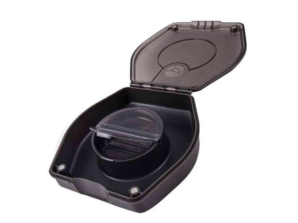 Pouzdro na uložení nástrah včetně šesti šroubovacích vodotěsných dóz na nástrahy (2 x velká a 4 x malá).