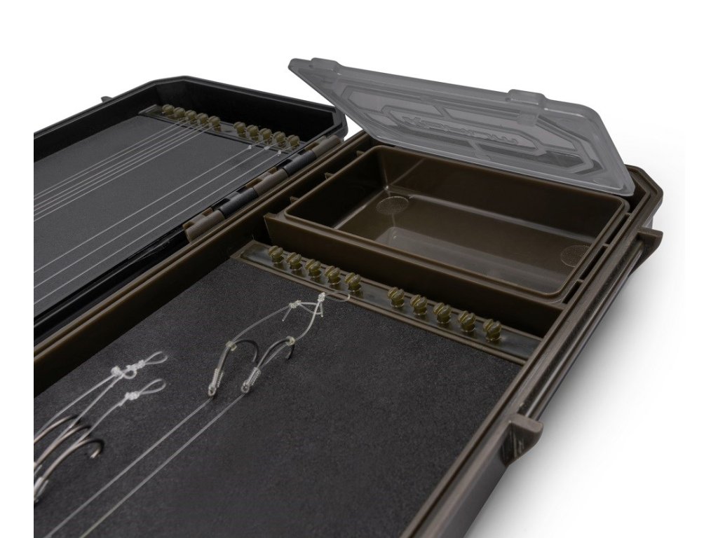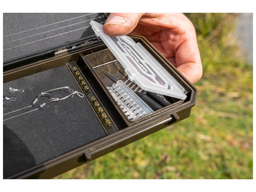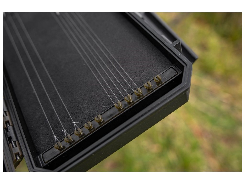 Navrženo pro umístění všeho, co potřebujete, přehledně na jednom pěkně organizovaném místě. Speci Rig Blox má několik jedinečných funkcí, které poskytují pevný domov pro vaše navázané háčky. Návazce drží úhledně na svém místě pomocí nových kolíčků. Na protější straně jsou přihrádky na bižuterii a kratší návazce.