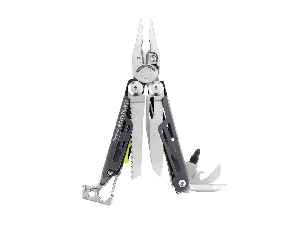 Leatherman SIGNAL jich přináší rovnou devatenáct. Mezi devatenáct nástrojů nového outdoorového speciálu SIGNAL, které vám pomohou nejen ve chvíli nouze, patří křesadlo s diamantovým škrtátkem, s jehož pomocí si velmi snadno rozděláte oheň, signální píšťalka pro komunikaci s okolím, karabina na zavěšení, ale také nůž s kombinovanou čepelí, kladivo, šídlo, sada otvíráků a šroubováků a samozřejmě tradiční multifunkční kleště. V atraktivním žluto-černém těle se skrývá možná záchrana vašeho života, se kterou by vás nemělo už nic překvapit.