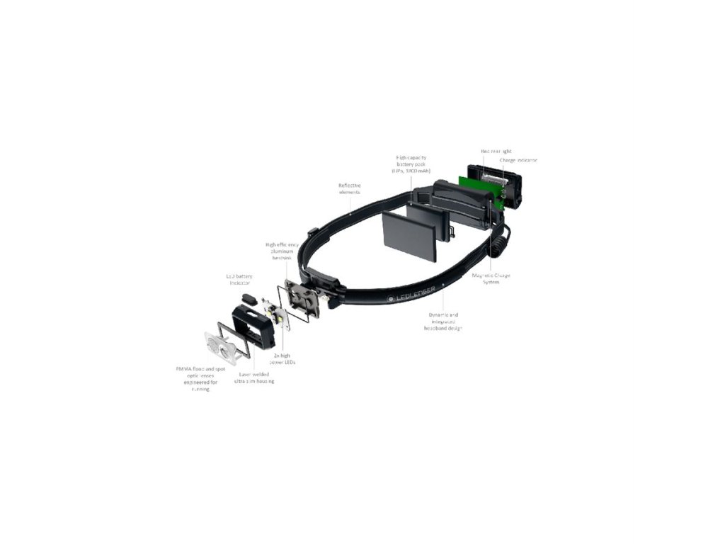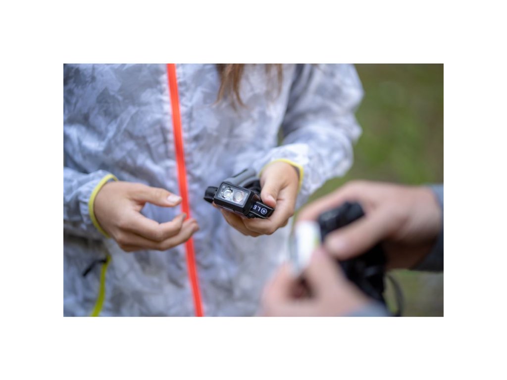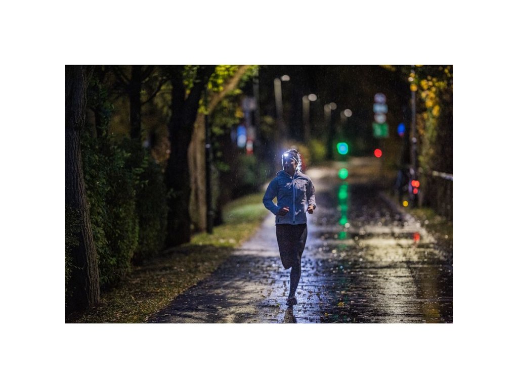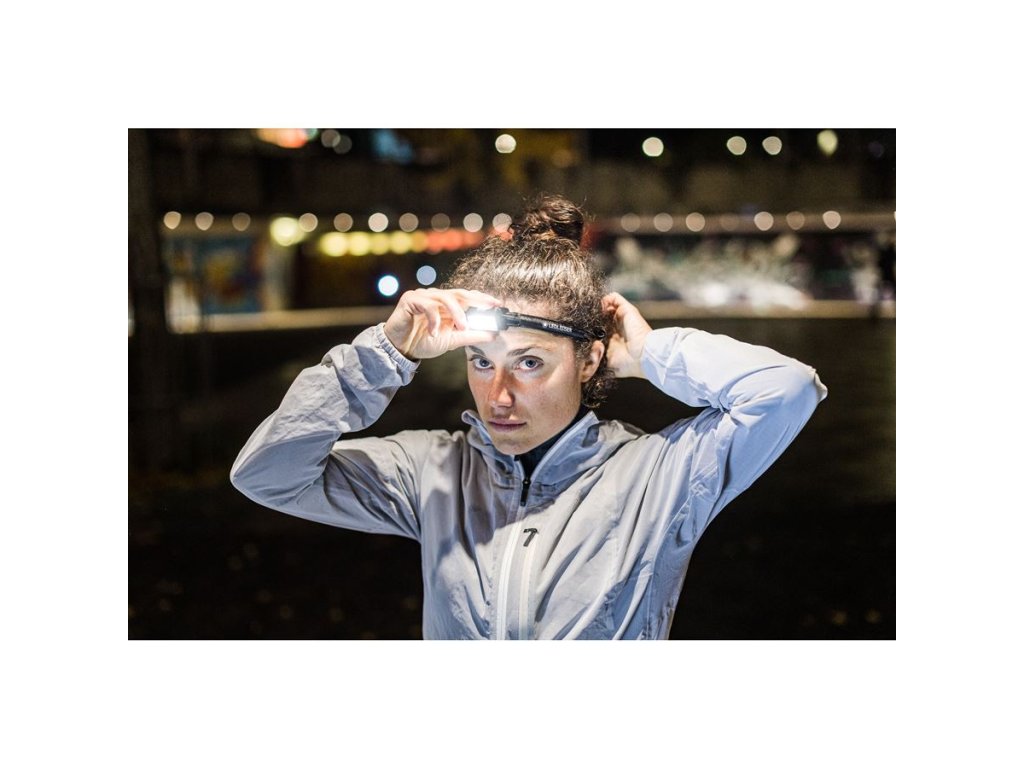 Rozložení hmotnosti mezi bateriový box a hlavici svítilny zajišťuje dokonalý komfort i pro dlouhé nošení. O maximální bezpečí se postará zadní červené světlo a reflexní čelenka. Svítilnu je možno připevnit na hrudní pás a zamezit tak oslňování běžců či chodců v protisměru.
