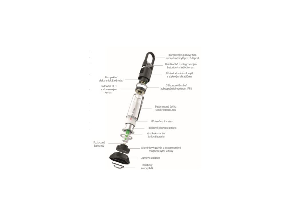 - Světelné režimy: Blink, Low Power, Boost, Power, Pulse, S.O.S., Strobe, Stmívání