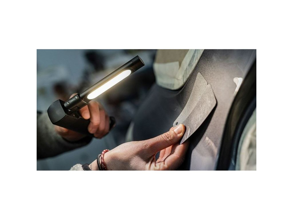 Hlavice svítilny je vybavena UV světlem pro detekci netěsností nebo pro kontrolu dokumentů. Výklopná a otočná hlava lampy rovnoměrně a spolehlivě osvětlí i těžko přístupné oblasti. Dobíjecí akumulátor lze snadno a opakovaně nabíjet a poté vyměnit na konci jeho životnosti. Mezi další užitečné funkce patří četné možnosti uchycení, vroubkovaný povrch pro spolehlivý úchop a praktický transportní zámek.