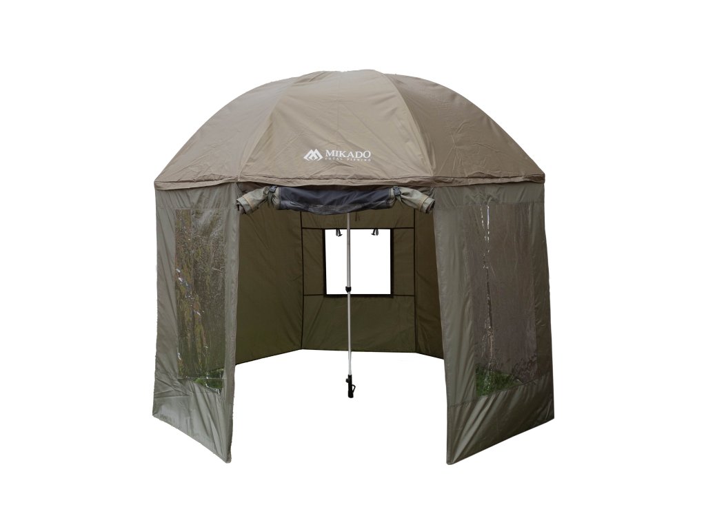 Průměr měřený podél vrchlíku je 3 m. Vyrobeno z voděodolného materiálu s podlepenými švy, nastavitelným úhlem a bočními stěnami. Okna s moskytiérou zajišťují větrání v horkých dnech.