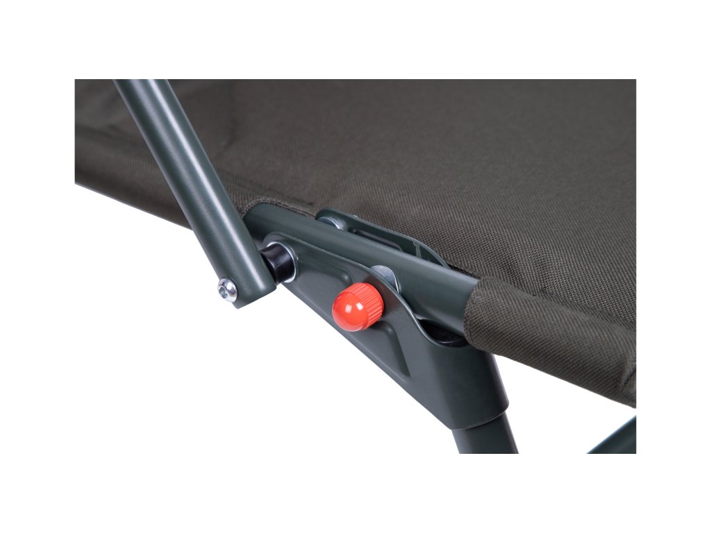 Kvalitní, klasické rybářské křeslo s nastavitelnými nohami a područkami.