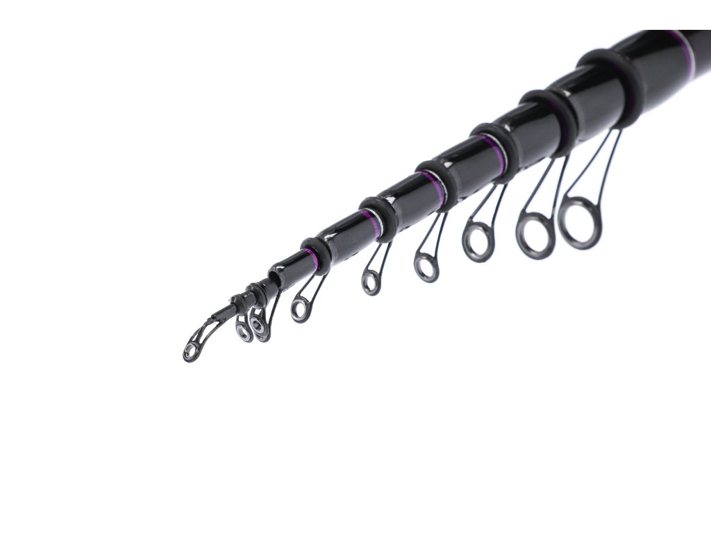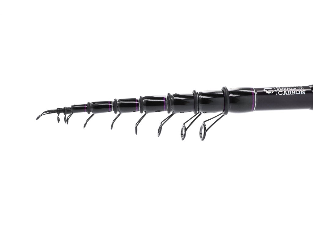 Lehký, ale silný uhlíkový teleskopický prut s očky, doporučený pro lov se splávkem na stojatých a pomalu tekoucích vodách.