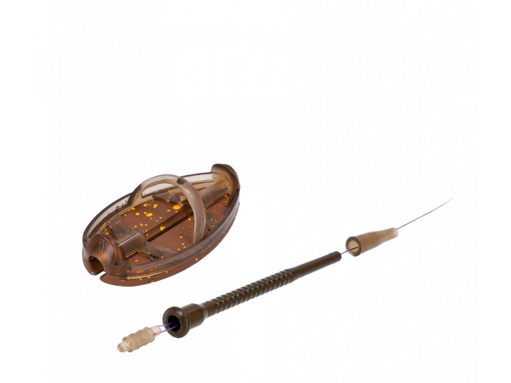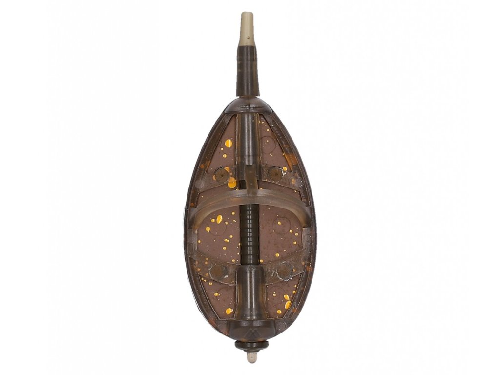 Revoluční a aerodynamický design s dopředu posunutou váhou „flat-bed“ krmítka kombinuje výhody method-feedrového krmítka a klasického krmítka určeného pro chytání s živými červy.
