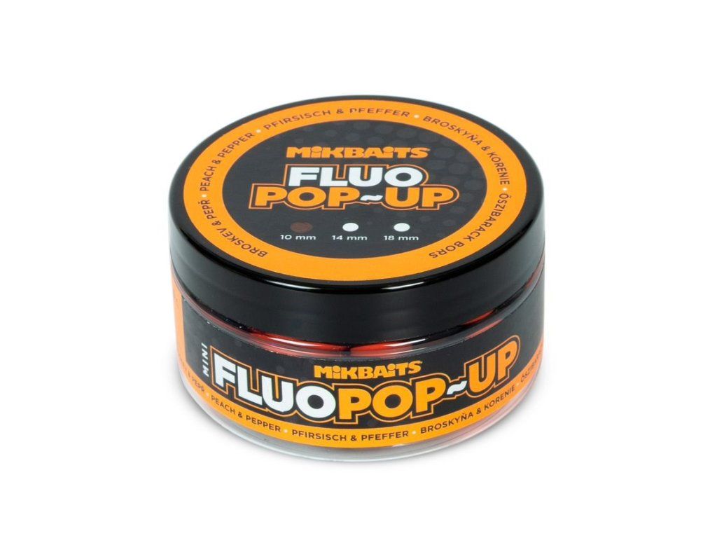 Mikbaits Mini Plovoucí Boilie Fluo Broskev Pepř 10mm 100ml