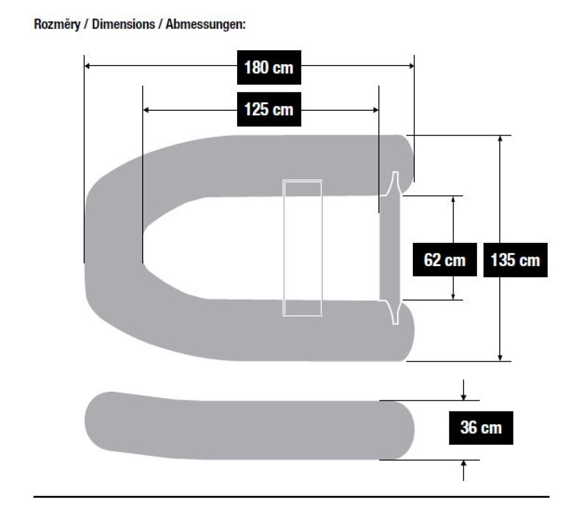 Nadstandardní šířka a specifický tvar člunu zajišťují extrémně velký vnitřní prostor. Ten je vždy výrazně větší než u běžných člunů stejné délky na trhu. Tomu napomáhá i specifické řešení zadní části plováků, které dovoluje umístit zrcadlo co nejblíže ke konci plováků a zároveň zachovat jejich funkci při udržování směru jízdy. Výrazně zdvihnutá příď spolu se speciálním tvarováním přední části, mohutným nafukovacím kýlem v celé délce podlahy a speciálně tvarovaným zrcadlem zajišťují vynikající hydrodynamické vlastnosti člunu a směrovou stabilitu. To v praxi znamená vyšší rychlost , snadnější ovládání a nižší spotřebu energie při pohonu člunu. Zesílený materiál plováků zvyšuje odolnost proti proražení. Nafukovací podlaha se zdvojenou nášlapnou vrstvou je téměř nezničitelná a její zelená barva skvěle ladí s se zbarvením člunu i černými vesly a ostatními doplňky. Každý člun je vybaven řadou upínacích pásků na suchý zip v přední části i na zrcadle. Najdeme zde i masivní upínací popruh na příslušenství ve střední části.