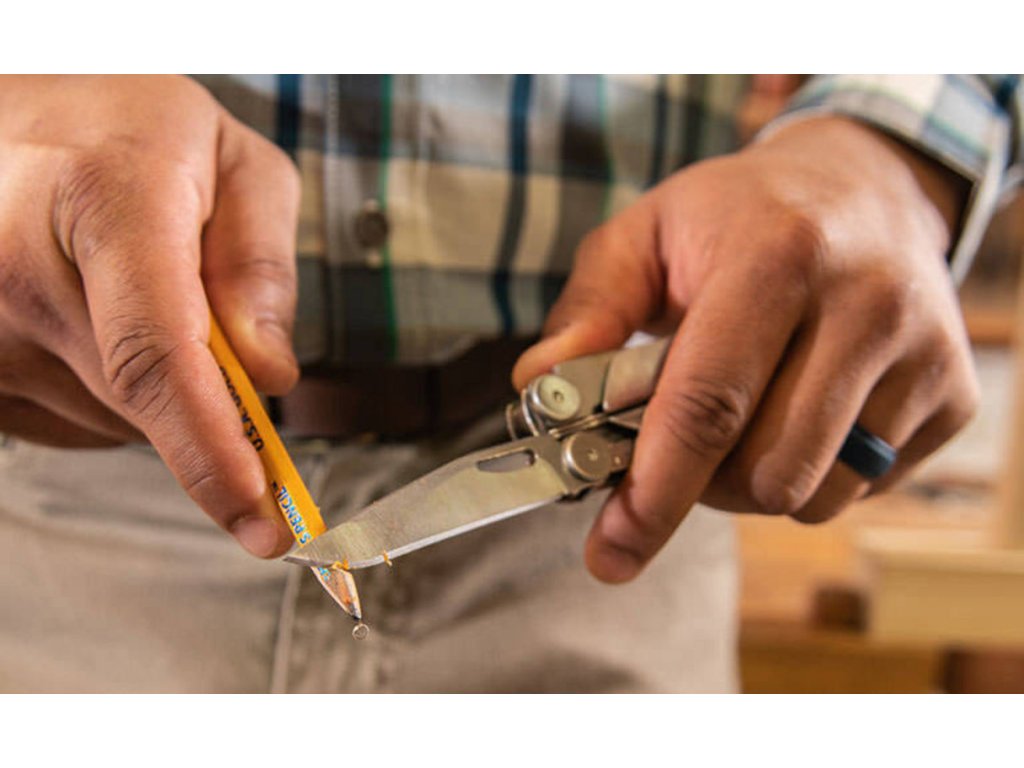 Je vybaven patnácti špičkovými nástroji (včetně ultraostré čepele nože, která je přístupná jednou rukou, pružinových nůžek a nástavce na bity).