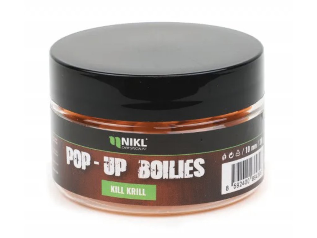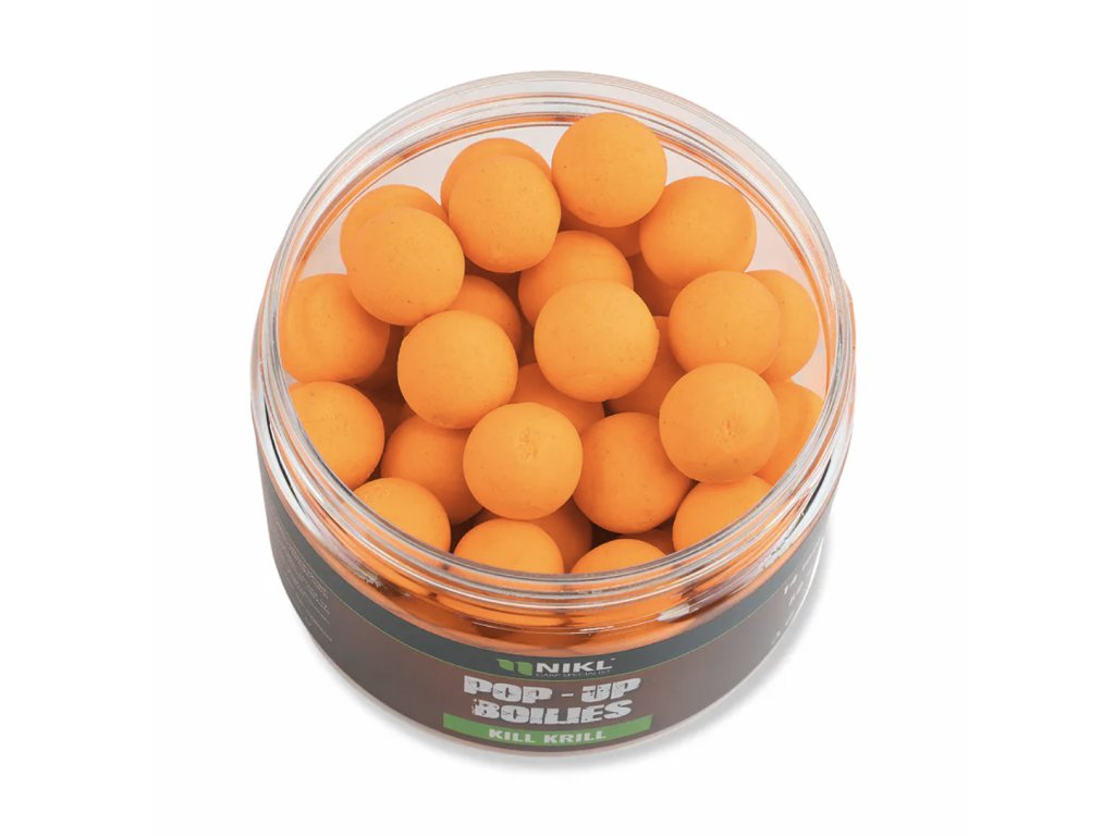Nikl Pop-Up Kill Krill v intenzivním oranžovém provedení nabízí okamžitou vizuální i aromatickou atraktivitu. Jasná barva v kombinaci se silnou krillovou esencí vytváří ve vodě výrazný potravní signál, který dokáže vyprovokovat záběr i v náročnějších podmínkách. Oranžová barva navíc skvěle vyniká v zakalené vodě i ve větší hloubce.