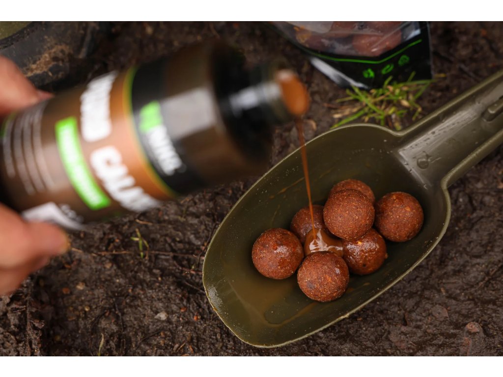 Dip zvýrazňuje pachovou a chuťovou stopu nástrahy (boilie, partikl, krmení).